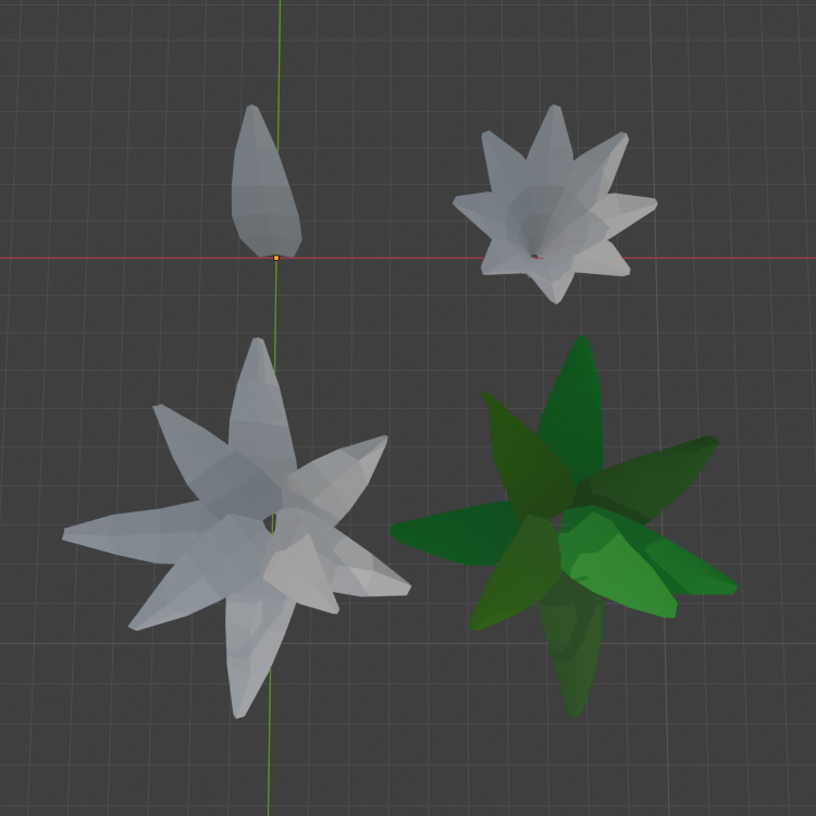 | Add icospheres for leaves. Duplicate, rotate, scale. |