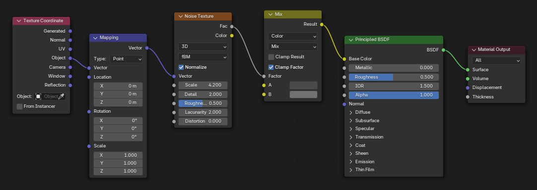When creating textures with this method it's important to think macro-details and micro-details and mix them together. The Scale value of the basic texture nodes can be used to this effect.