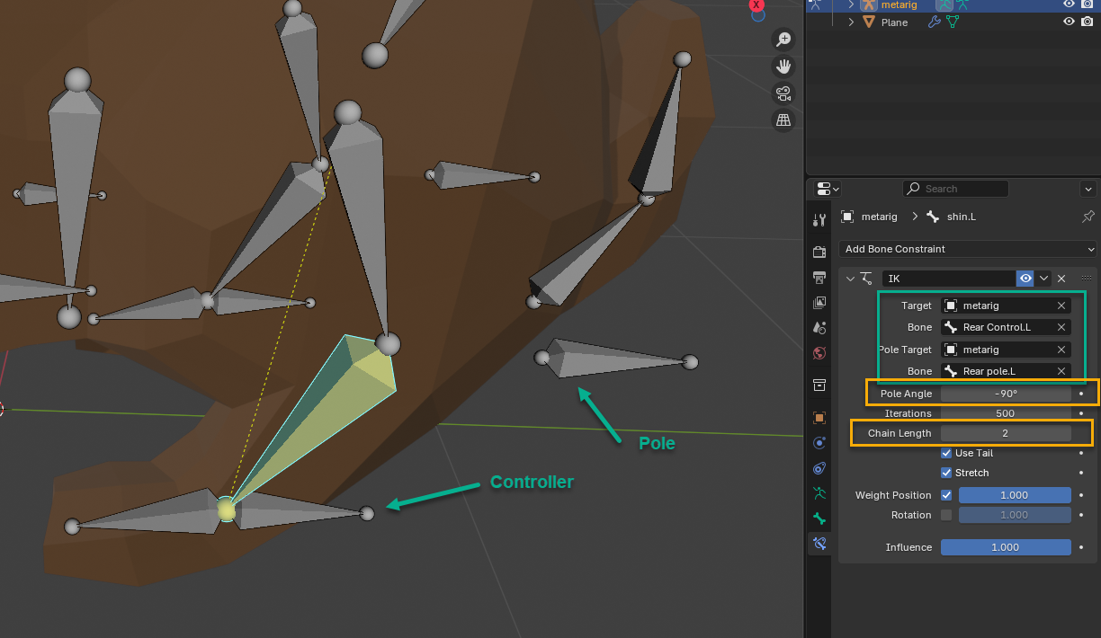 Select the Armature as the Target and the Controller bone as the Bone.