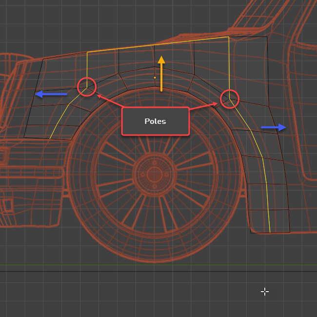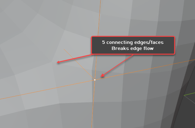 Edge flow is affected by the poles contained in a model. A pole is any vertex that has a number of connecting edges different than 4.