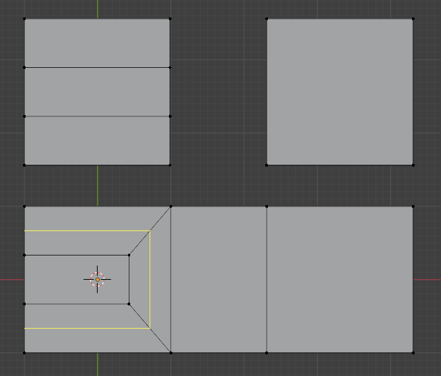 The second smaller zone is made by insetting the two faces with B for boundaries activated.