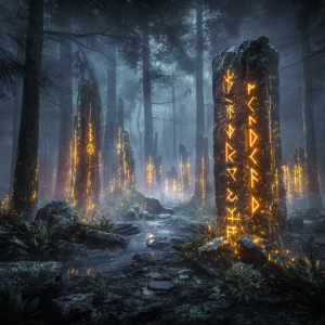 | sacred | epic | glowing runes | low angle |