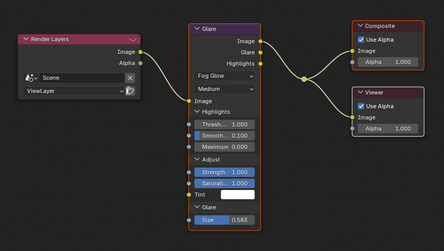 Optionally add a Image Editor viewport and view the Viewer node for a clearer view of post-process.