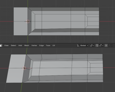 The second smaller zone is made by insetting the two faces with B for boundaries activated.